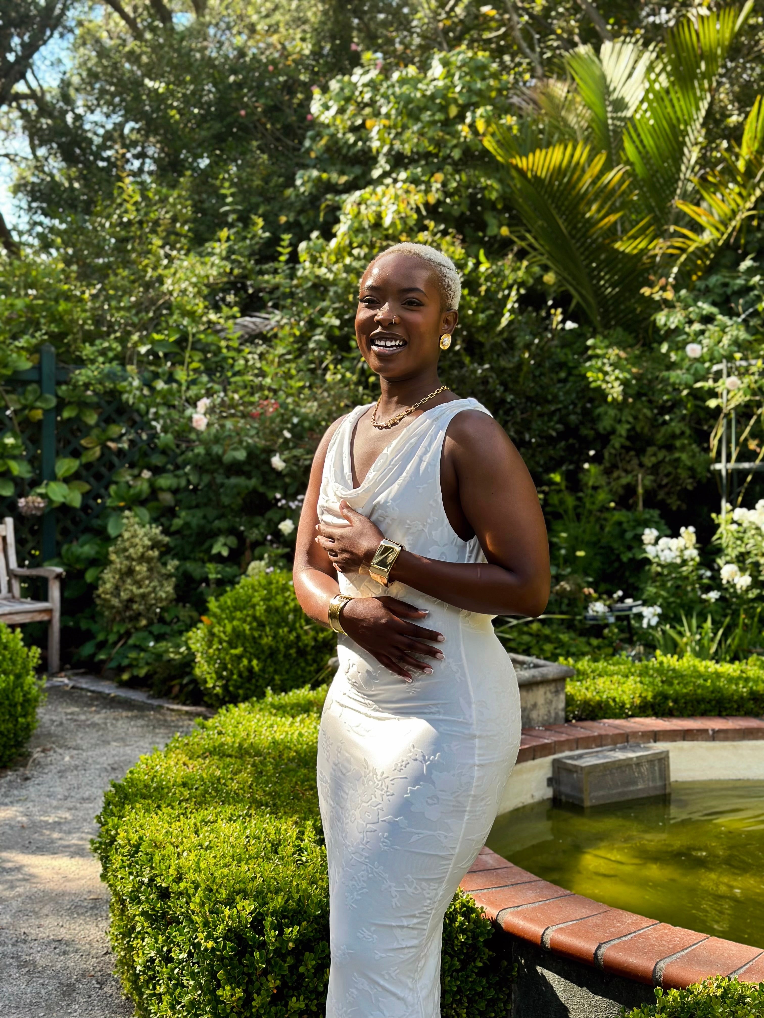 Step into the Michal Dress and let its flowing beauty mirror your radiant confidence.