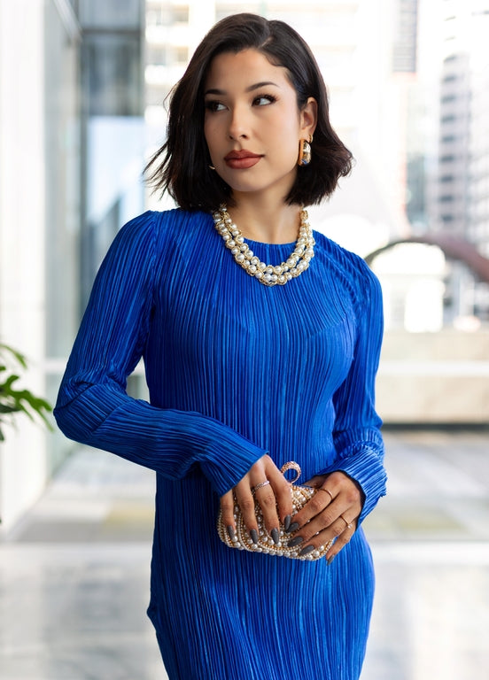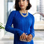 Introducing the elegant bodycon silhouette Maxi Dress –where style and favour intertwine to create a masterpiece that is uniquely you. Tailored to perfection, it effortlessly adapts to any body shape, celebrating the beauty that resides within. The neck flared sleeves and the rounded neckline exude sophistication. With a perfect balance of comfort and allure, this maxi dress boasts a medium stretch, ensuring you move easily and gracefully at every turn.