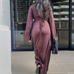 Plan your Roman holiday with the Rome-inspired long-sleeve maxi bodycon dress, and let elegance be your guide.