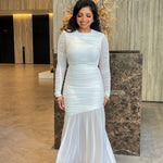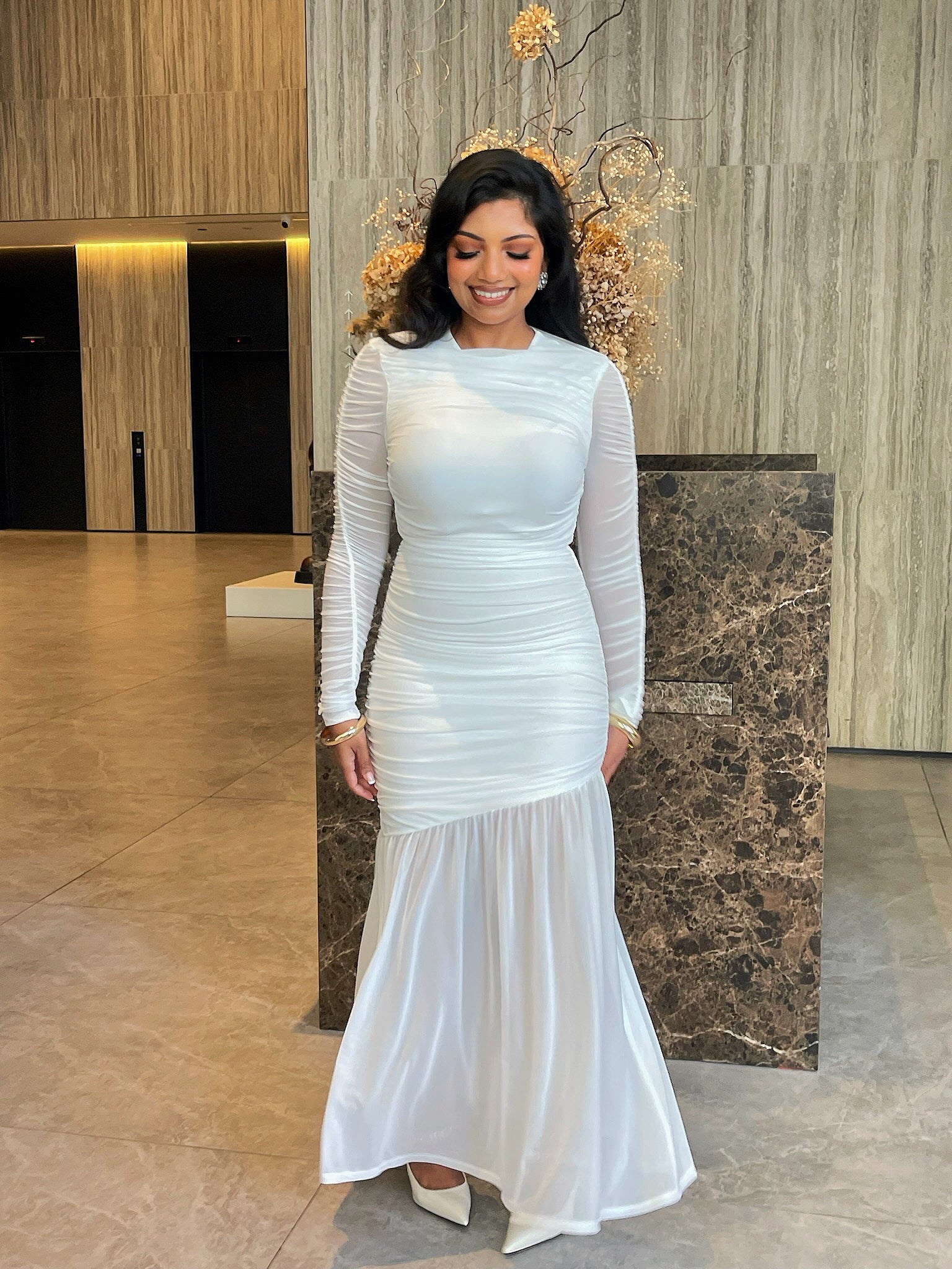 Crafted from high-stretch material, this dress offers both comfort and style, while the long-sleeve details complete the perfect look. Whether you're hitting the town or attending a special event, this dress ensures you look and feel your best.