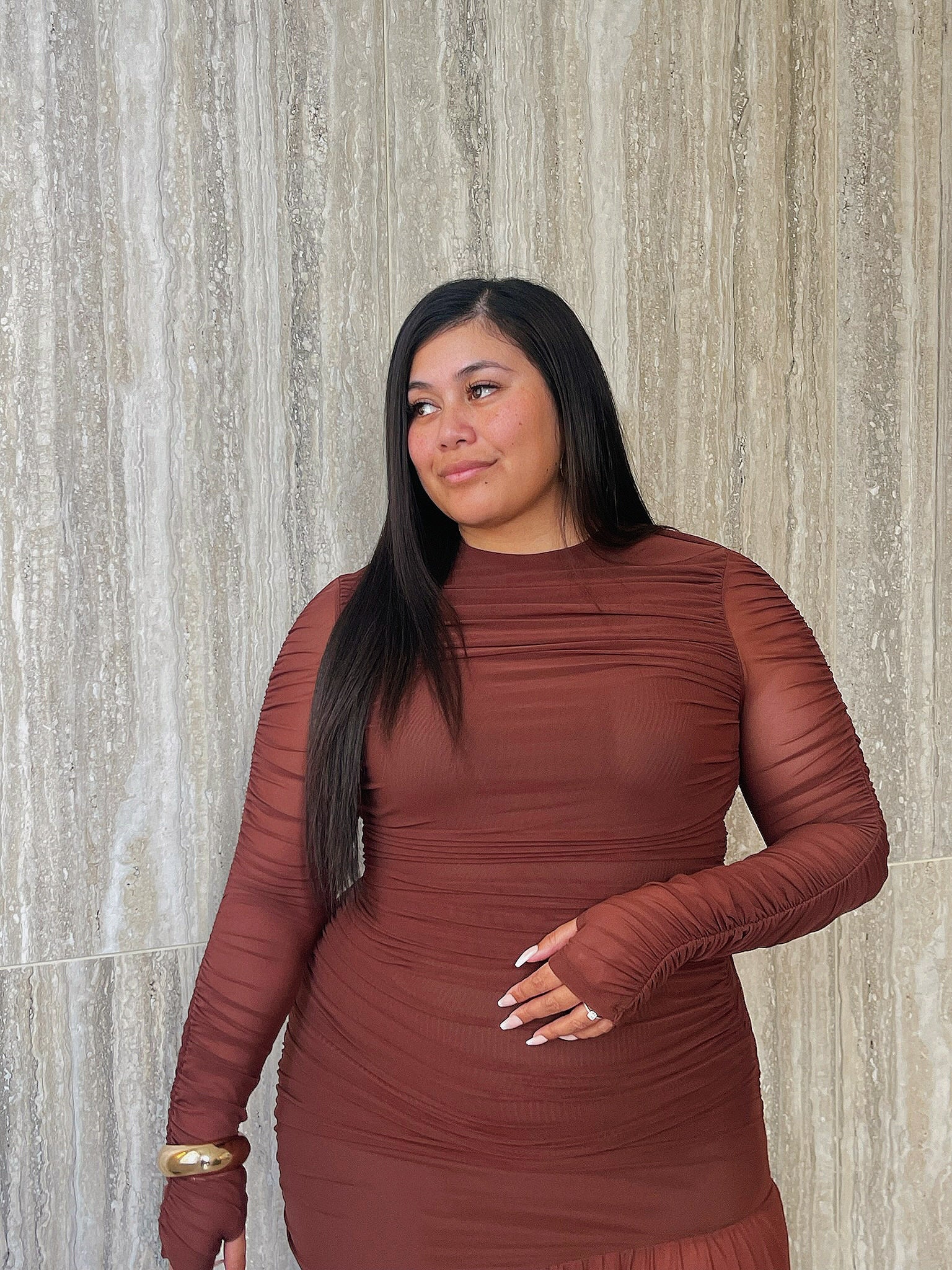 Make a statement with this essential sheer bottom long-sleeve dress, and ensure all eyes are on you.