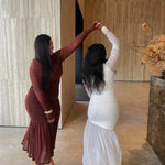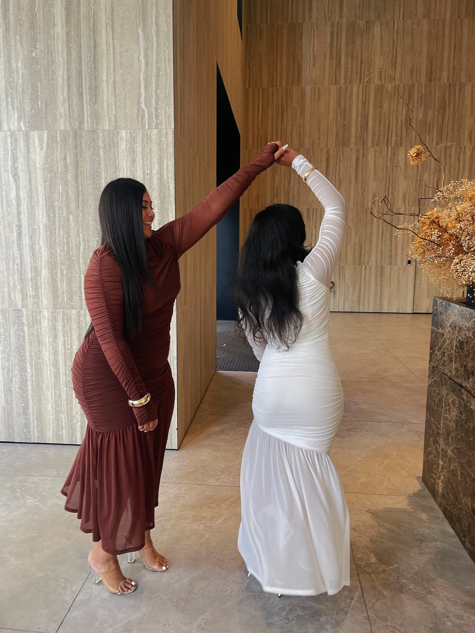 Elevate your wardrobe with this essential sheer bottom long-sleeve dress, a must-have for any fashion-forward individual. Perfect for a captivating night out, this dress is guaranteed to make heads turn. The sheer bottom adds a touch of allure, ensuring you stand out from the crowd.